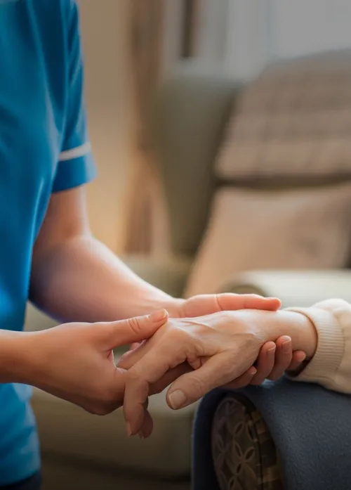 Caring hands supporting comfort, dignity, and daily wellbeing.